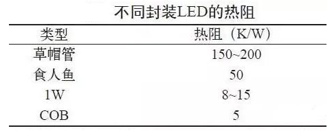 由此可見採(cǎi)用COB技術封裝的LED相比於(yú)其他封裝工藝熱阻最小。